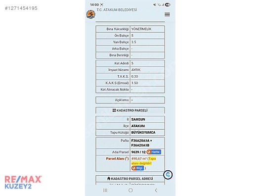 Büyükoyumca 4585 m2 1.5 emsal 5 kat